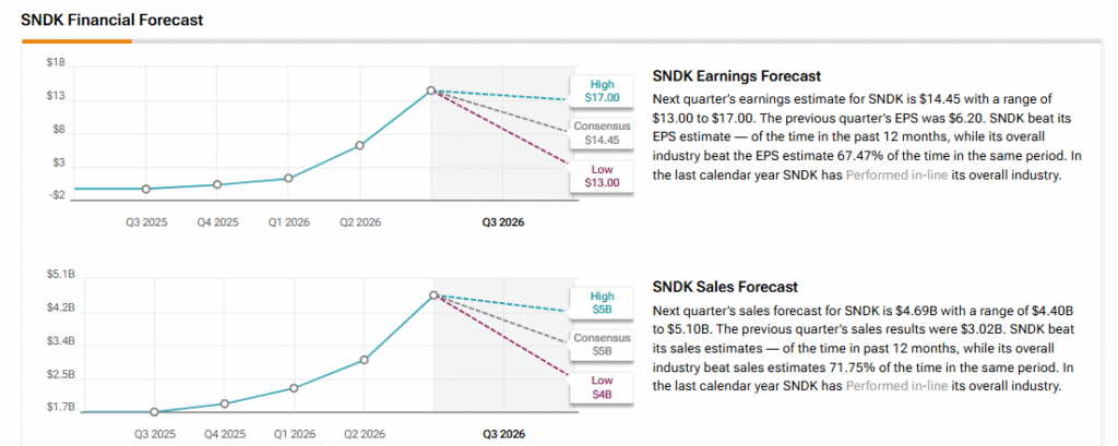 По данным аналитиков Уолл-стрит, выручка SanDisk в отчетном квартале может составить 4,69 миллиарда долларов. Это более чем на 175% выше уровня аналогичного квартала годом ранее. Прибыль на акцию, как ожидается, достигнет 14,45 доллара против убытка в 0,30 доллара год назад. Такой разворот подчеркивает, насколько сильно изменилась рыночная конъюнктура для производителей памяти.