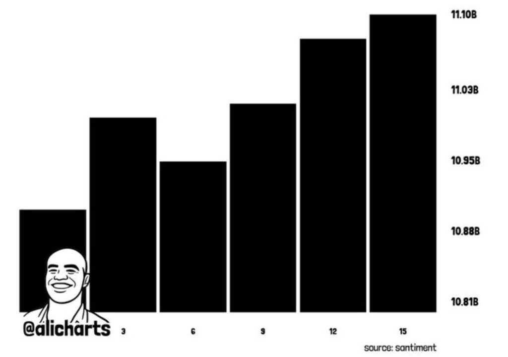 По данным ончейн-метрик, в начале марта киты XRP владели примерно 10,88 млрд токенов общей стоимостью около $14,57 млрд. Позже их объем вырос до 11,10 млрд XRP, а оценочная стоимость этих активов достигла примерно $16,24 млрд.